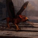 Many mages traditionally enchant their pets so that they can be summoned as familiars, and that is the case with this gryphon cub. When not summoned, she stays on a large gryphon breeding farm that once belonged to her late owner, but was sold when he moved to Skyrim with his wife. Even though she is well cared for there, she was raised used to receive special attention and still appreciates an owner who treats her with the same care, and summons the little cub in exciting adventures.