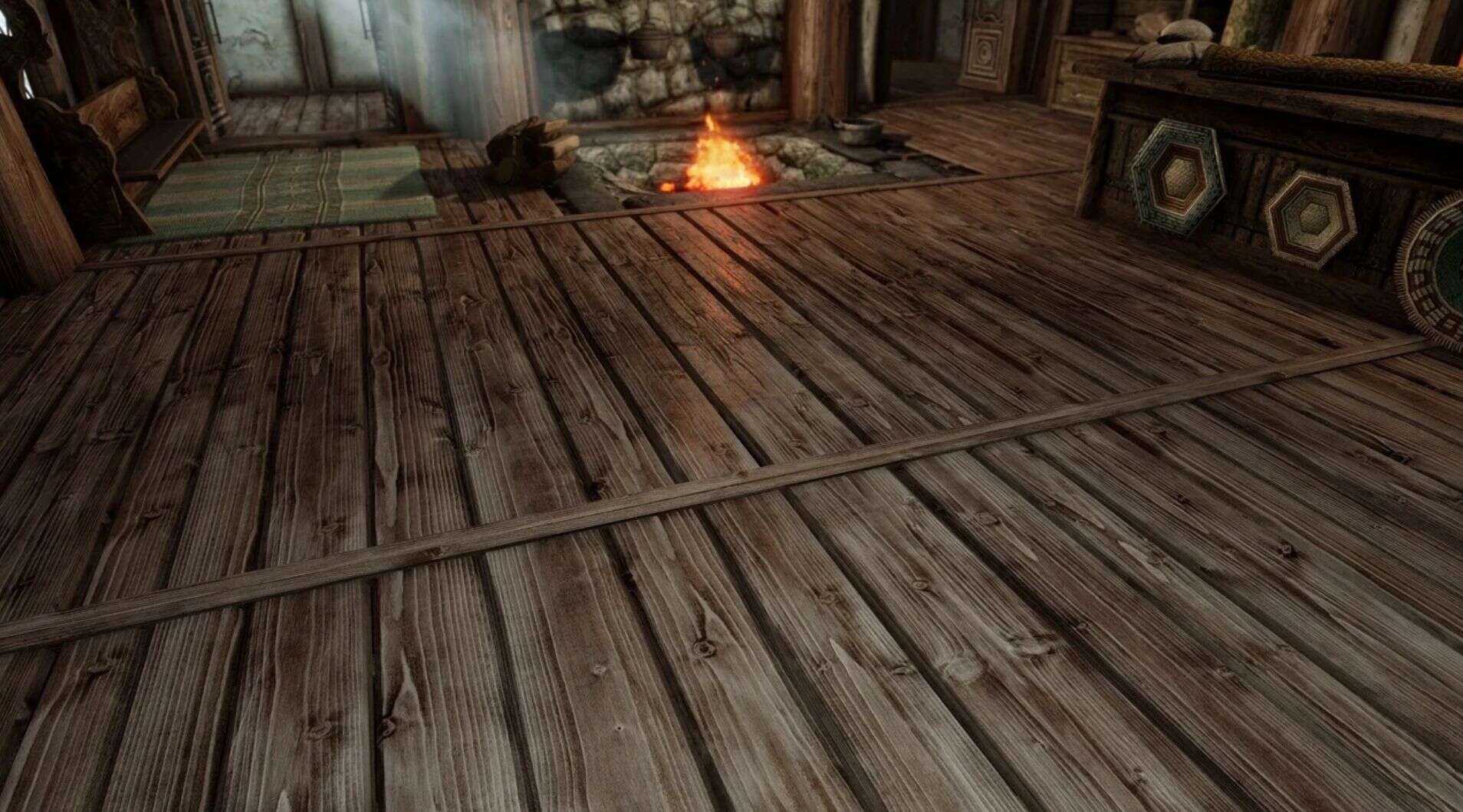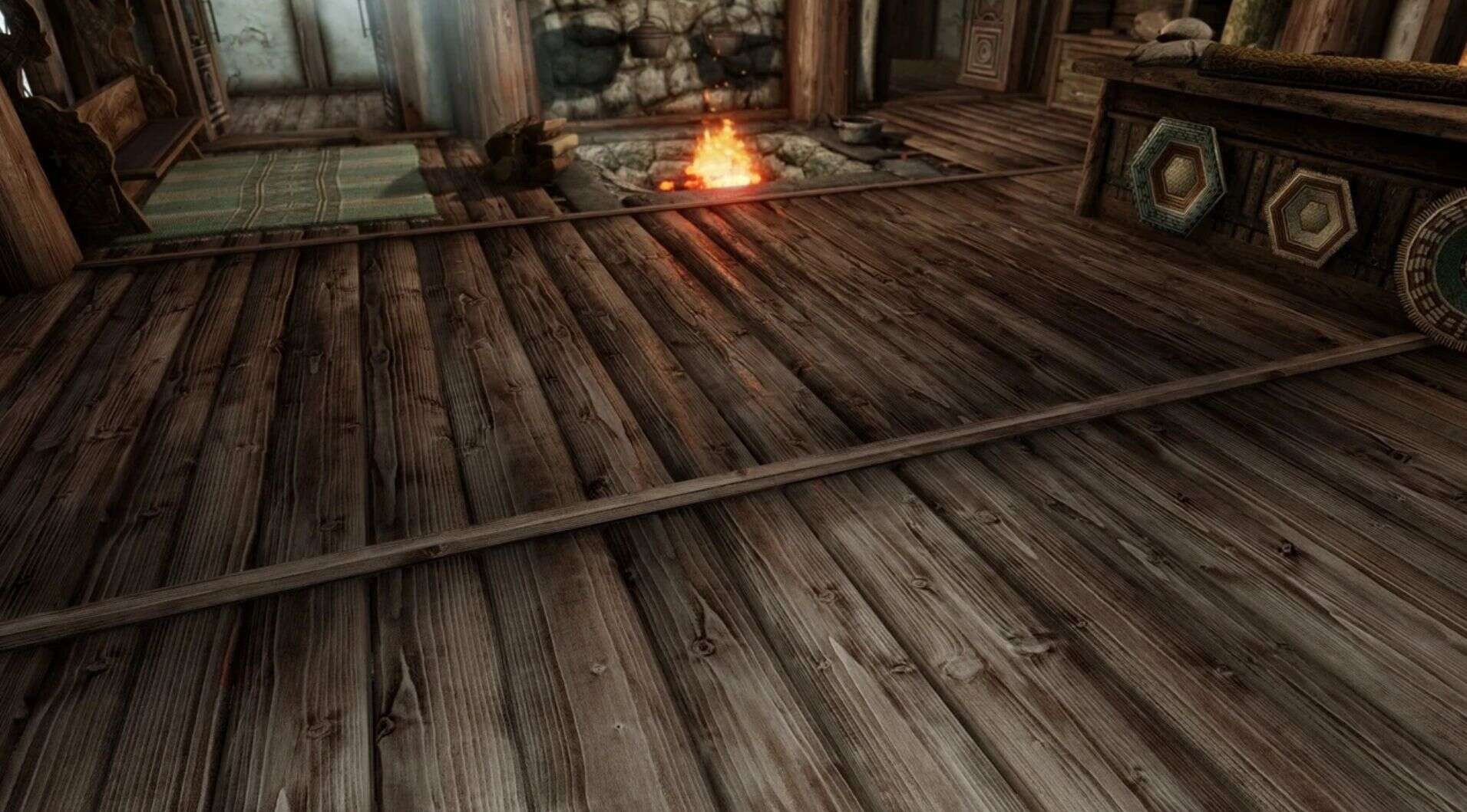 It makes the wooden floors of Whiterun Houses and Tavern look like they were built by a master carpenter.