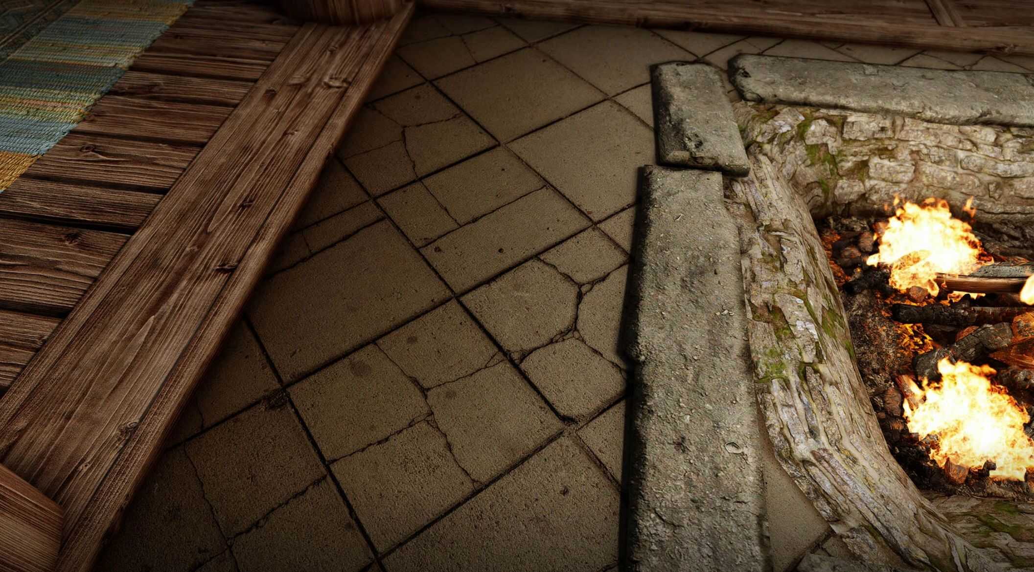 It replaces 4 wooden floor meshes of Whiterun interiors and 3 firepit meshes. Some small gaps were left intentionally but are only visible up close. It also fixes some UV issues the original meshes have.