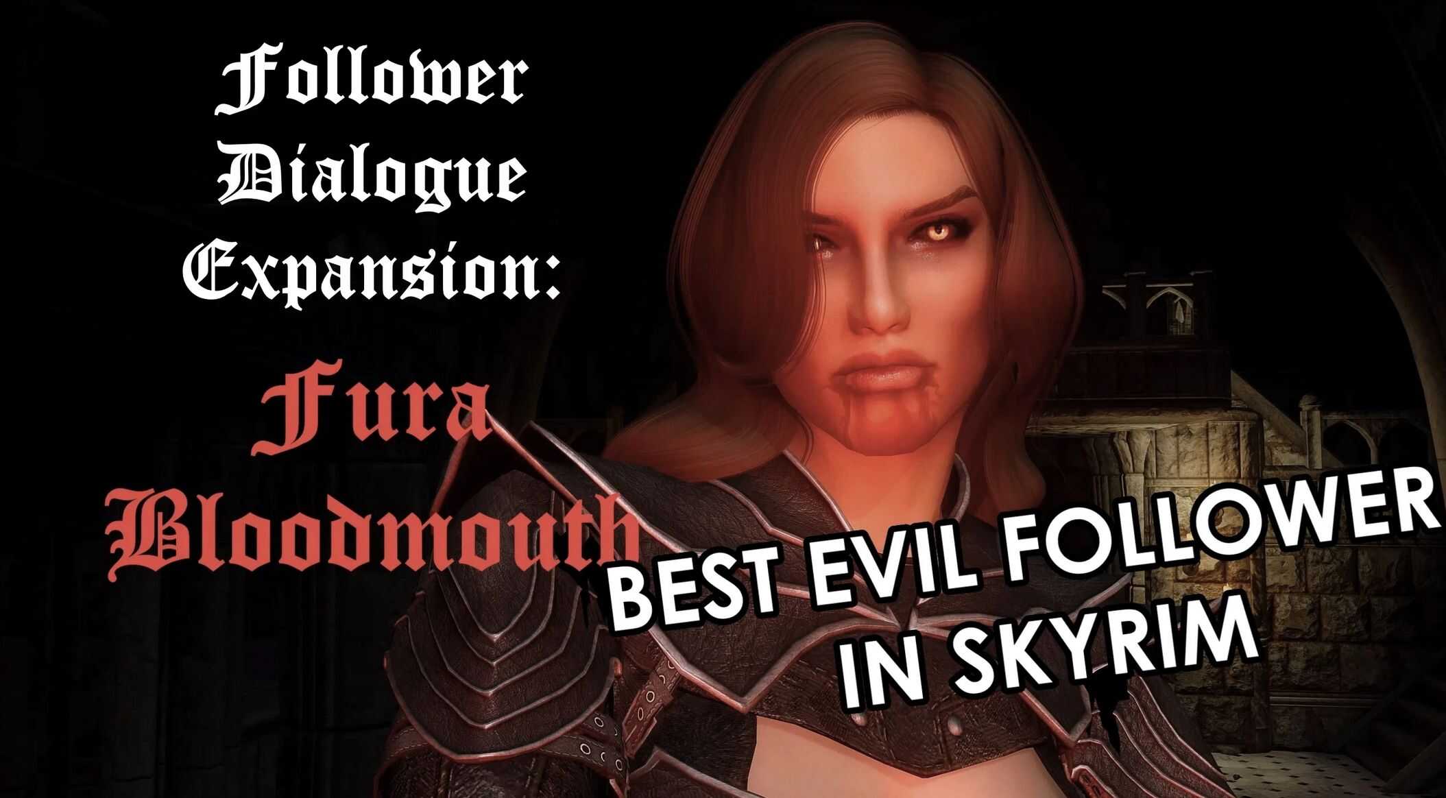 In this mod, Fura is made into a fully fledged follower and expanded as a brutal, indifferent and self-preserving vampire warrior. Once betrayed by her superior, she was left for dead on the plains of Whiterun, but a dark pact shall save her life and change her soul for all eternity. Having seen treachery, she believes power and survival are all that matter.
