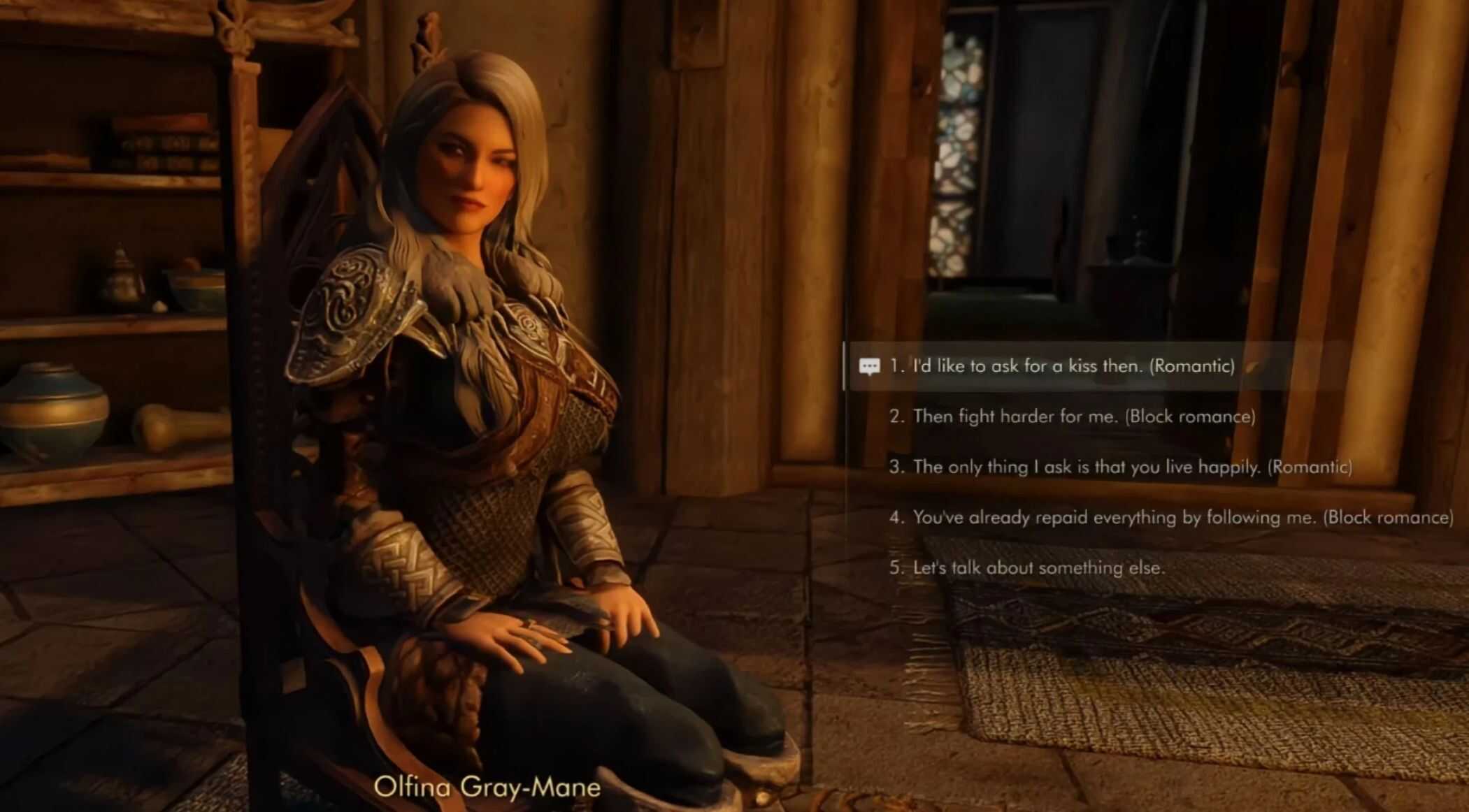 Makes Olfina Gray-Mane, the Strong Nord Woman of Whiterun, a fully-fledged follower with 398 lines. Quest and environmental awareness.