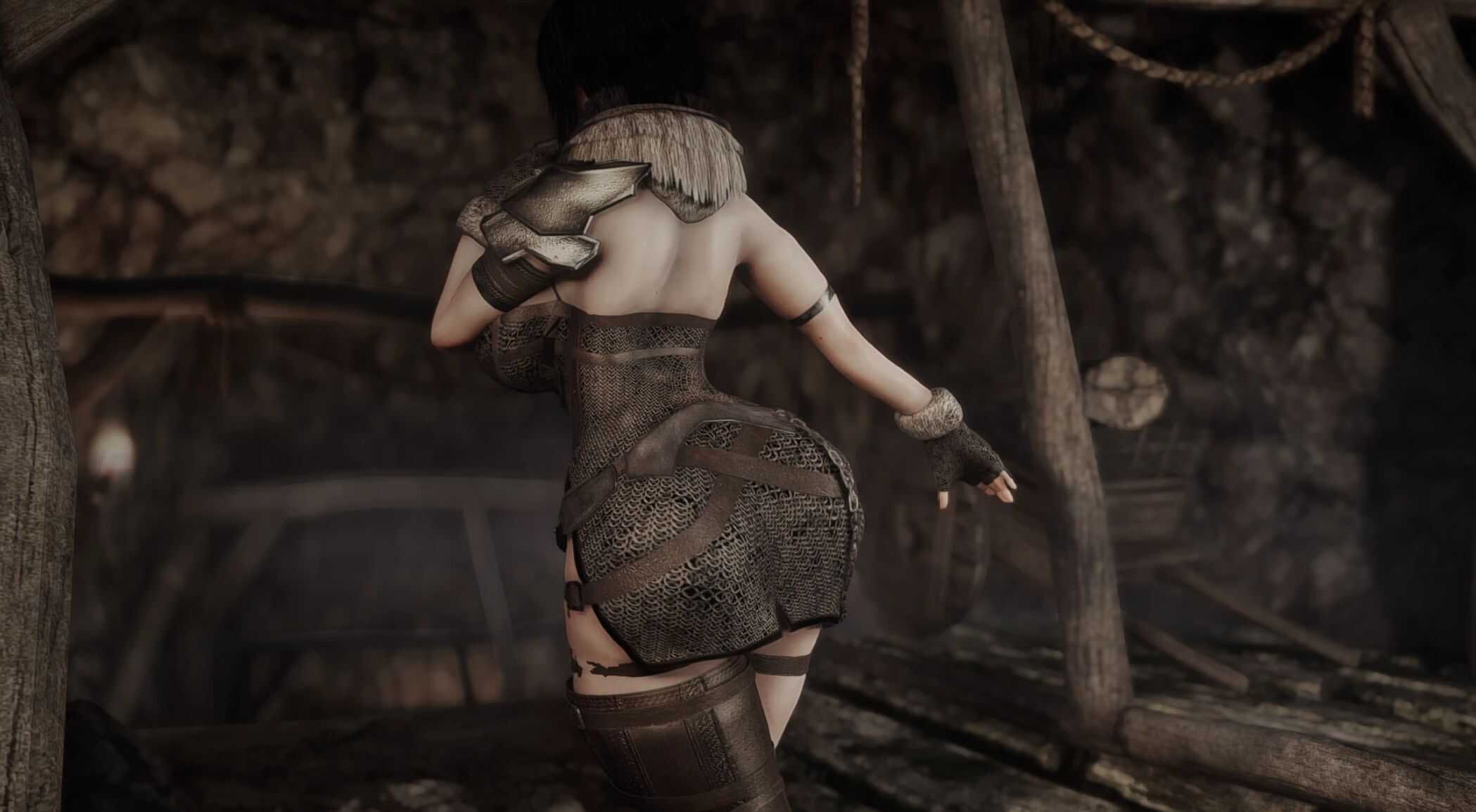 – Immersive physics; simulates stiffness of leather and chainmail, but breast movement is also limited in this version.