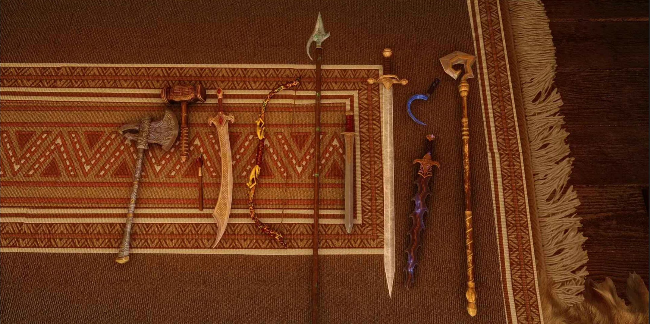 With weapons from the other Elder Scrolls games such as: Morrowind, Daggerfall, Redguard, Battlespire and ESO.
