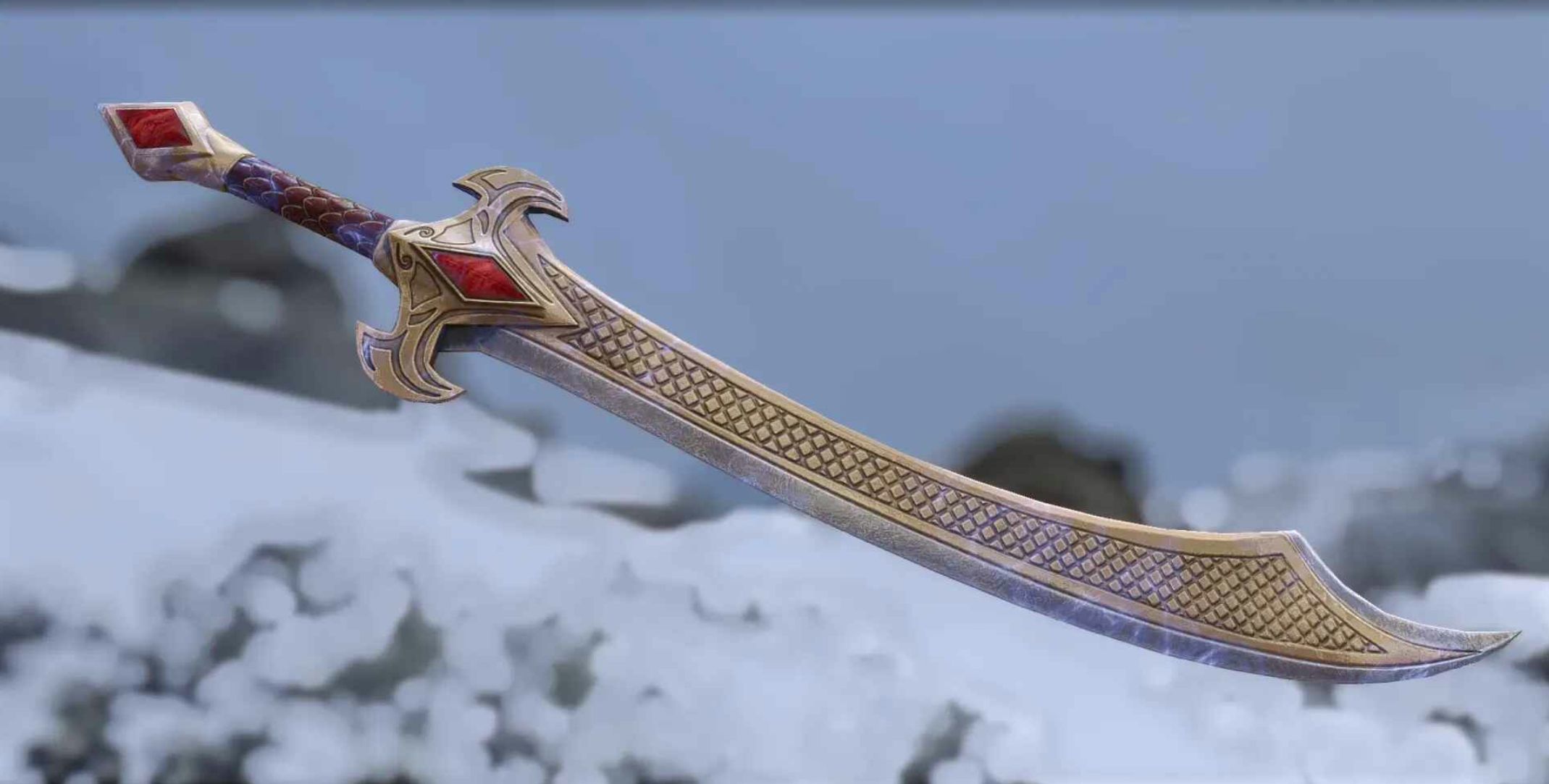 Shimsil: A Unique Gold and Ebony Shortsword from Morrowind, Once used by the necromancer Delvam Andarys from the town of Mawai.