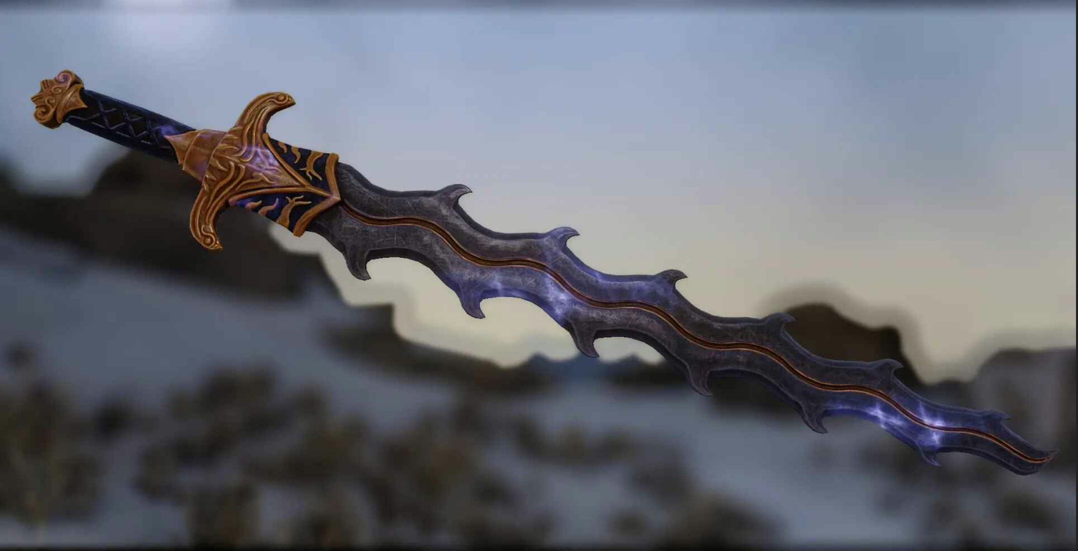 Stormkiss: Was the weapon of the Bastard Prince Olmgerd the Outlaw, Son of High-king Harald who founded the first empire of the Nords. Buried with its owner after being killed during an invasion of Morrowind. Unearthed by the Neverine.