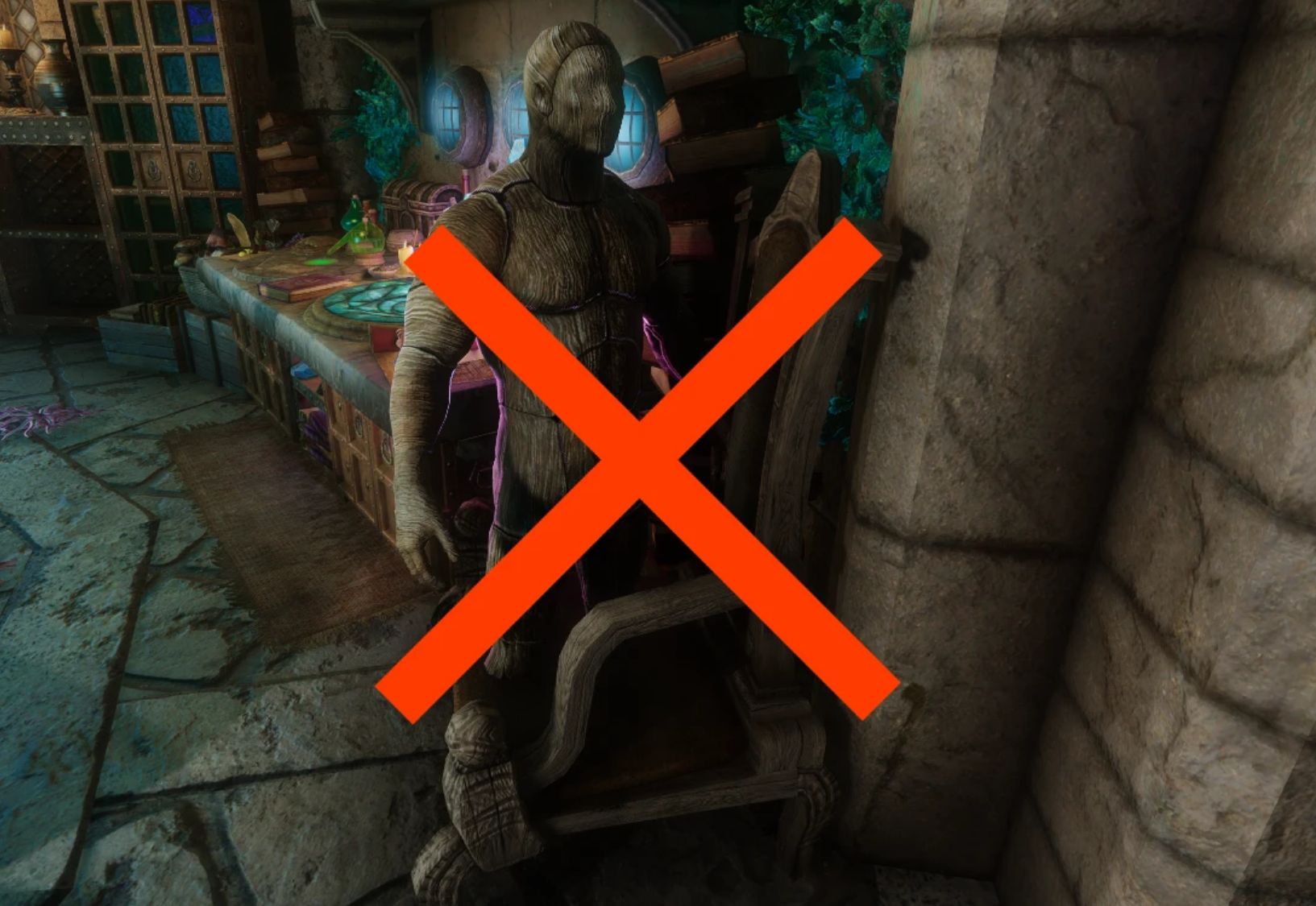 Simply removes the ActorTypeNPC keyword from the ManakinRace and sets the immobile flag as well.